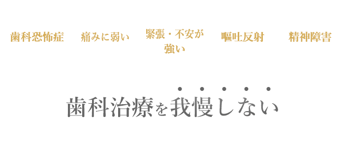 歯科恐怖症の方、痛みに弱い方、緊張や不安が強い方、嘔吐反射がある方、精神疾患がある方にも